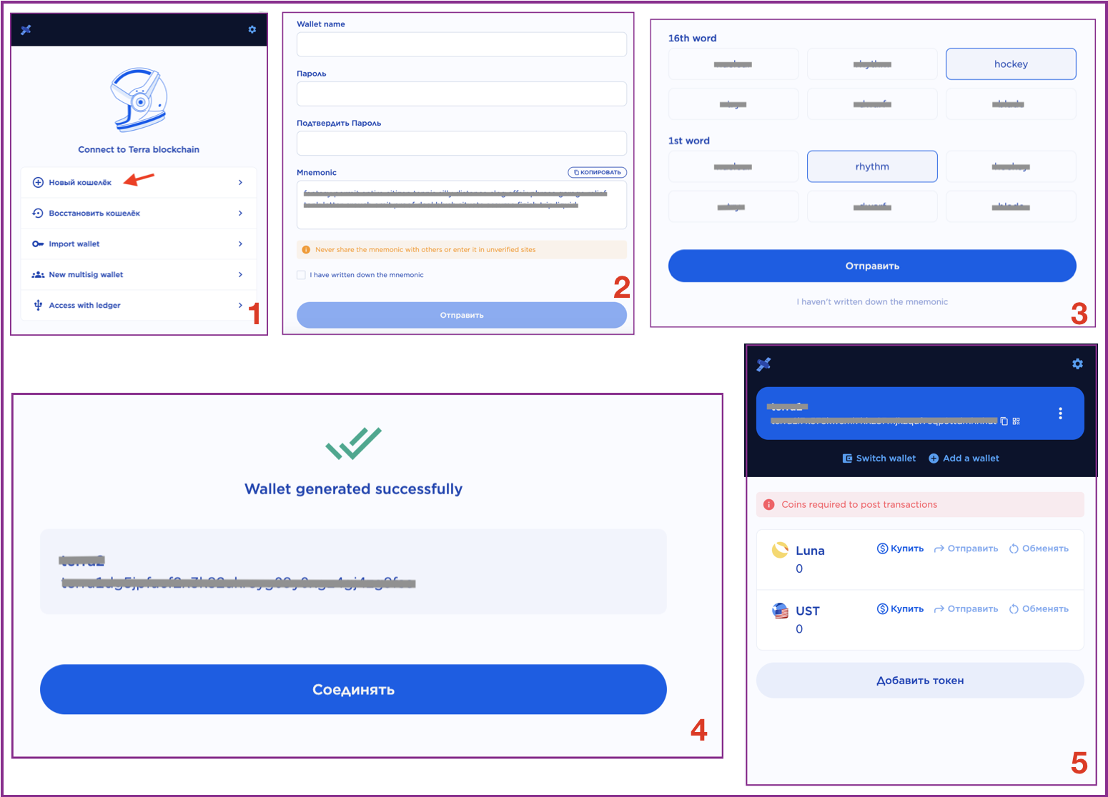 В расширении Terra Station можно создавать несколько кошельков. Поэтому сделаю ввод с нового, а этот оставлю с получившейся суммой.
