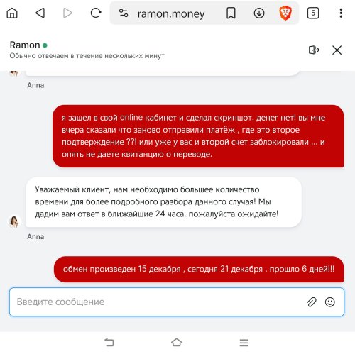 Roman9 Posted 29 Sep 2018, 10:51 Posted 29 Sep 2018, 10:51 (edited) Здравствуйте, уважаемые Пользователи! Представляем Вам простой и современный функционал обменного сервиса RAMON Всегда держим актуальные курсы. Выгодные и быстрые обмены в популярных направлениях круглосуточно, и без выходных. Преимущества: МИН ОБМЕН ОТ 2000 РУБЛЕЙ! Двухуровневая Реферальная программа! Система скидок! Круглосуточные обмены! Обменивай без регистрации! Всем посетителям обеспечена профессиональная техническая поддержка! Связаться с нами можно: Telegram Электронная почта support@ramon.cash Отзывы о ramon.cash на BestChange RAMON – НА ЗАЩИТЕ ВАШИХ ИНТЕРЕСОВ! Edited 20 Oct 2021, 05:51 by Roman9 1
