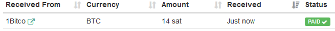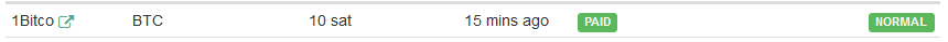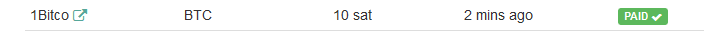 Sionis Posted 27 Mar 2019, 08:34 Posted 27 Mar 2019, 08:34 (edited) Пользователь получает 8-15 сатоши один раз в 5 мин. Потребуеться пройти одну капчу на выбор (reCaptcha, SolveMedia) Сайтов-посредников (укоротителей) и всплывающих окон нет. Выплаты мгновенные, сразу идут на кошелёк FaucetHub. Имеется реферальная программа 30% каждого клейма.http://1bitco.xyz/?r=1475T1YDBDQFpSHXyKAtoVqLiFLyEv3eqw Edited 11 Jun 2019, 08:34 by Sionis