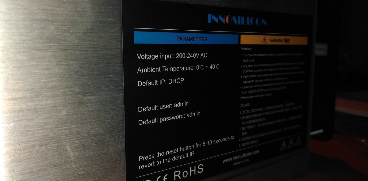Innosilicon S11 Алгоритм: Blake 2b Хешрейт: 3.83 tH/s ±8% Энергопотребление: 1380W ±8% Подключение к сети: Ethernet Рабочая температура: 0°C—85°C Размеры: 290мм(д) x 130мм(ш) x 155мм(в) Вес: 3.7 kg www.innosilicon.com -