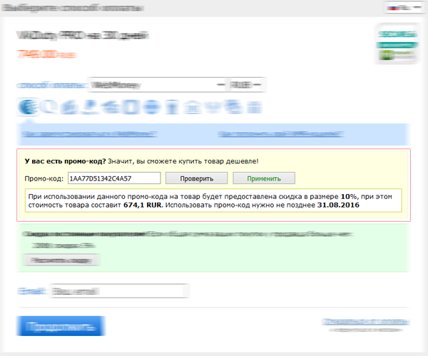 VkDuty Posted 8 Aug 2016, 14:23 Author Posted 8 Aug 2016, 14:23 По просьбам пользователей мы решили предоставить возможность приобрести PRO версию со скидкой, введя промо-код при покупке! Как использовать промо-код? При покупке PRO версии во время оплаты введите Ваш промо-код в соответствующее поле, после чего нажмите "проверить", сразу же после успешной проверки нажмите "применить". Скриншот: https://forum.bits.media/uploads/downloaded/h_1469332365_8182218_71e9c8d113_33636c18272afe246bad772a69abc726.pngПромо-коды VkDuty:727670BD416A489637B16BF307FF457AE0B640DB002D43CD5A86E963554047BDПромо-коды дают 10% скидки на любой срок PRO версии и действуют до 1 сентября 2016 года.