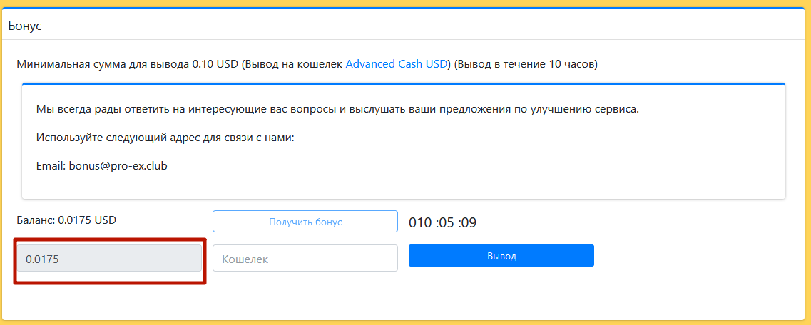 Dedgorun Posted 27 Apr 2020, 10:09 Posted 27 Apr 2020, 10:09 На этом сервисе вы можете получать бонус от 0.015 до 0.50 USD на свой кошелек Advanced Cash USD. Бонус выплачивается не более 1 раза за 24 часа. Ссылка на бонусник https://pro-ex.club/ru/account/bonus Ссылка на кошелёк http://wallet.advcash.com/referral/50d83939-2c9b-4891-9855-d9430b0a24a0 Оплата Protectimus, [27.04.20 12:37] AdvCash. На ваш счет зачислены средства. ID транзакции: 99502a38-32ce-4f1e-9728-bdb1065b23f4. Сумма: +0.10 USD. Комиссия: 0.00 USD. Дата время: 27.04.2020 11:37. Тип перевода: Перевод внутри системы. Статус: Выполнен. Отправитель: