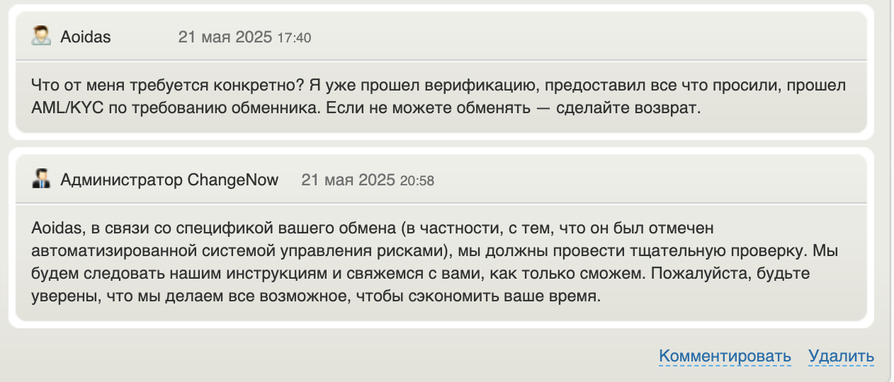 [Недобросовестность] ChangeNOW - Мгновенный безлимитный круглосуточный обмен BTC, ETH, XRP, BCH, XMR, NEO (170+ других криптовалют)