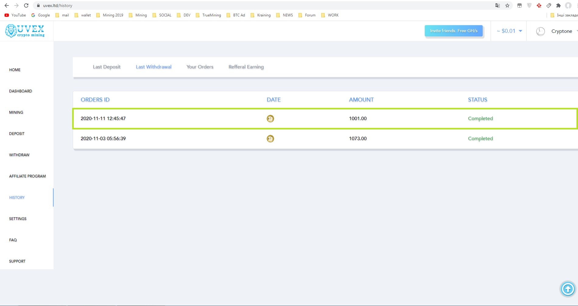 Uwex.ltd - новый майнинг с бонусом 100 GHS