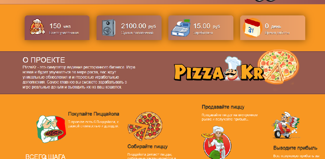 rosster Posted 22 Oct 2020, 08:58 Posted 22 Oct 2020, 08:58 Я не Админ. О проекте. PizzaKr - это экономический симулятор. Нанимайте пиццайола, они будут производить пиццу. Собранная продукция будет храниться на складе, продавайте ее на внутреннем рынке и получайте реальные деньги. Мы собрали наиболее успешные маркетинговые решения в данном сегменте, что несомненно внесет наш проект в ряды долгожителей. На проекте есть серфинг сайтов где вы можете получить дополнительный доход за просмотр сайтов рекламодателей или заказать рекламу для привлечения новых партнеров в ваши проекты. мой вклад : реф. ссылка: https://pizza-kr.com/?i=151