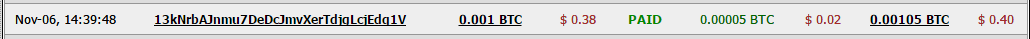 Neonich Posted 7 Nov 2015, 15:13 Author Posted 7 Nov 2015, 15:13 Получил выплату 0.0315 btc ( $ 12.18 ) https://blockchain.info/tx/cd9d2ca61272087e3741c2ae11809c135828c13955dcd3c03d2252bd41bdf94b