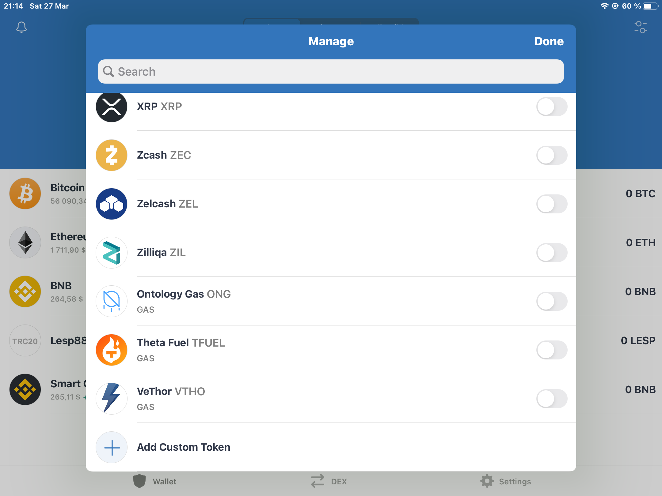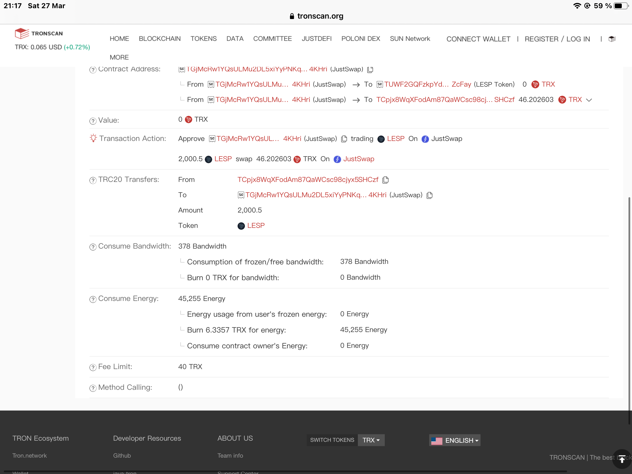 Ruslan1983 Posted 30 Mar 2021, 15:01 Posted 30 Mar 2021, 15:01 27.03.2021 в 21:29, LerBer сказал: В TrustWallet нужно сначала добавить токен Lesp. Для этого в правом верхнем углу нажмите на настройку монет, прокрутите в самый низ и нажмите +add custom token. Там нужно выбрать network tron и вписать адрес контракта TUWF2GQFzkpYdmUaL45W1shxY1sFnZcFay. После этого токен появится в кошельке, адрес для получения такой же как ваш трон адрес Скриншоты прилагаются: Кроме того имейте в виду, что комиссия сети за конвертацию lesp->trx составляет 45255 tron energy, либо 6.3357TRX. Для того чтобы совершить обмен на JustSwap, вам нужно иметь на трон кошельке как минимум 6.34 trx для оплаты комиссии сети, иначе поменять не получится монеты перевел на труст валлет .а как в самом кошельке поменять непонятно, где там найти JustSwap, на балансе есть 11 монет трона