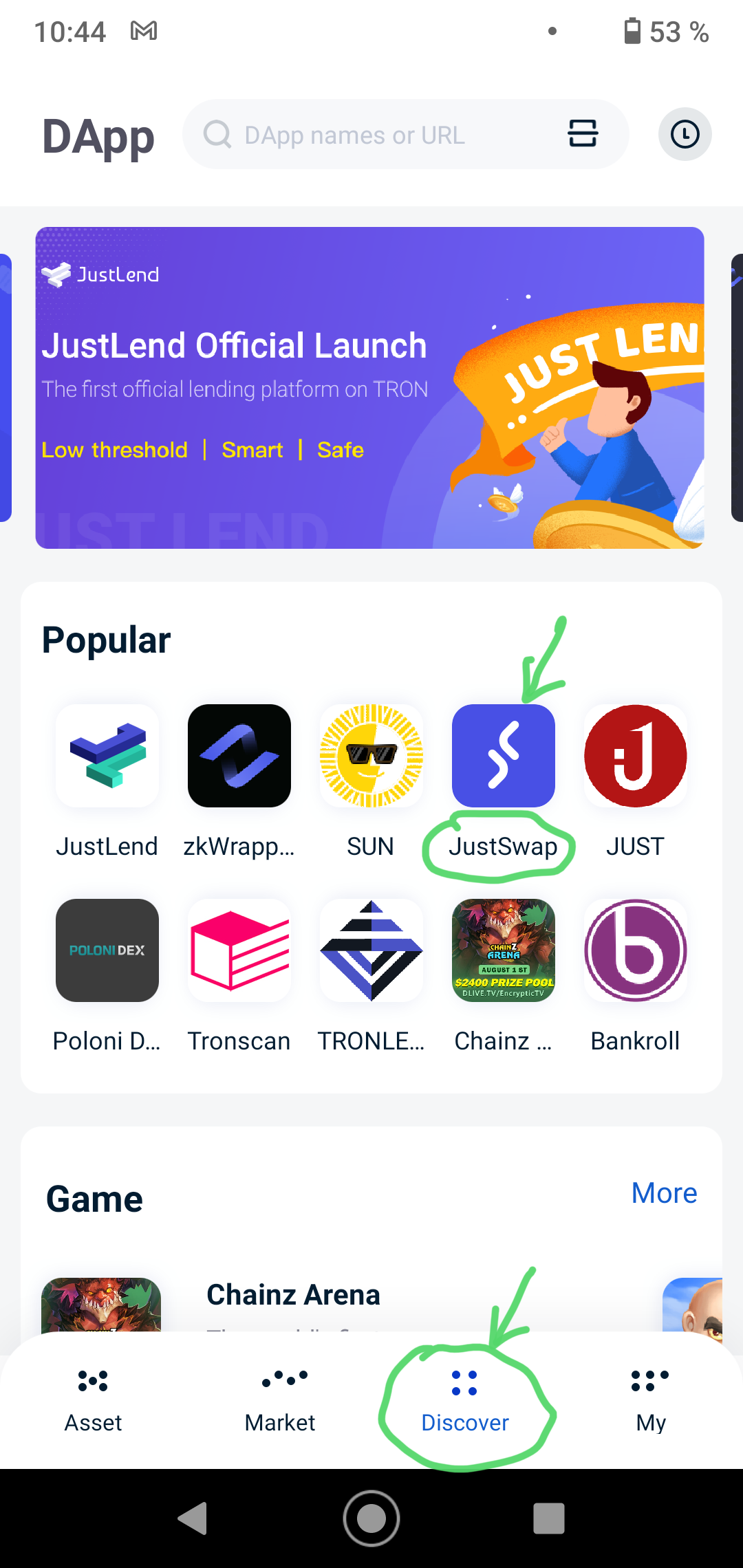 LerBer Posted 31 Mar 2021, 08:00 Posted 31 Mar 2021, 08:00 (edited) Пошаговая инструкция, как менять на JustSwap, чтобы токен появился для обмена нужно вставить адрес контракта TUWF2GQFzkpYdmUaL45W1shxY1sFnZcFay (третий скриншот) Edited 31 Mar 2021, 08:01 by LerBer
