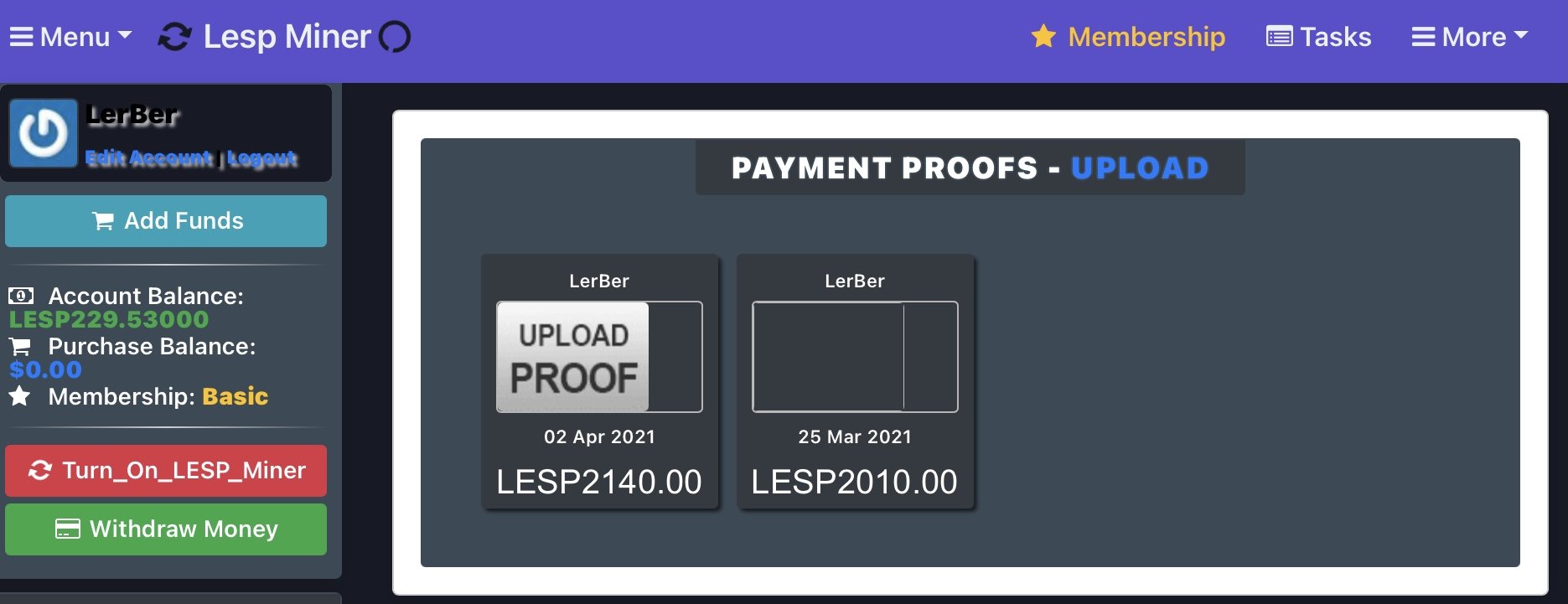 Leon7997 Posted 2 Apr 2021, 19:53 Posted 2 Apr 2021, 19:53 1 минуту назад, LerBer сказал: Да, чтобы вывести нужно загрузить скриншот предыдущей выплаты на lesp888 Вот сюда да PAYMENT PROOFS - UPLOAD но там нельзя загрузить нажимаю на UPLOAD и только обновляется страница или возможность появиться после первой выплаты
