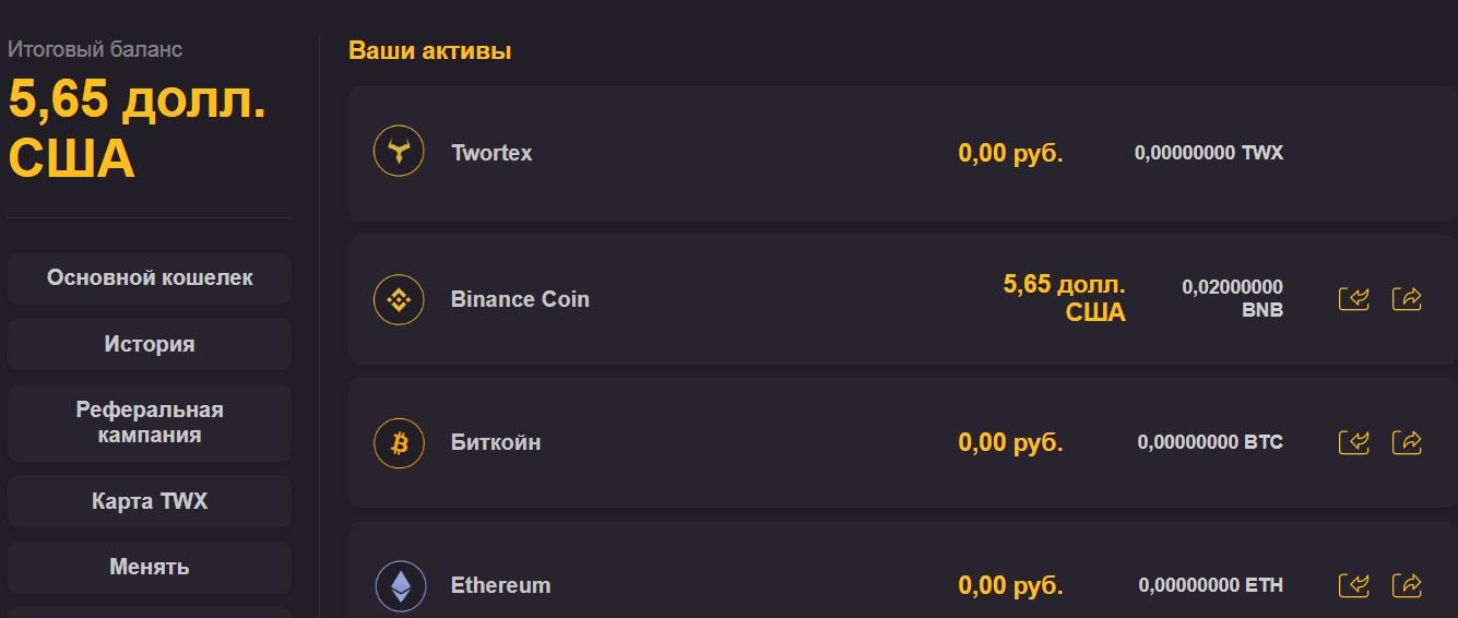 twortex.com получите BNB на 5 долларов