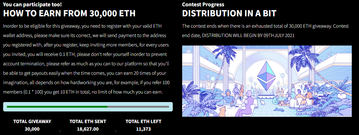Ether-bonus.com- раздача 09.07.2021г.- 0,5 ETH на кошелек при регистрации +0,1 ETH за приглашенного