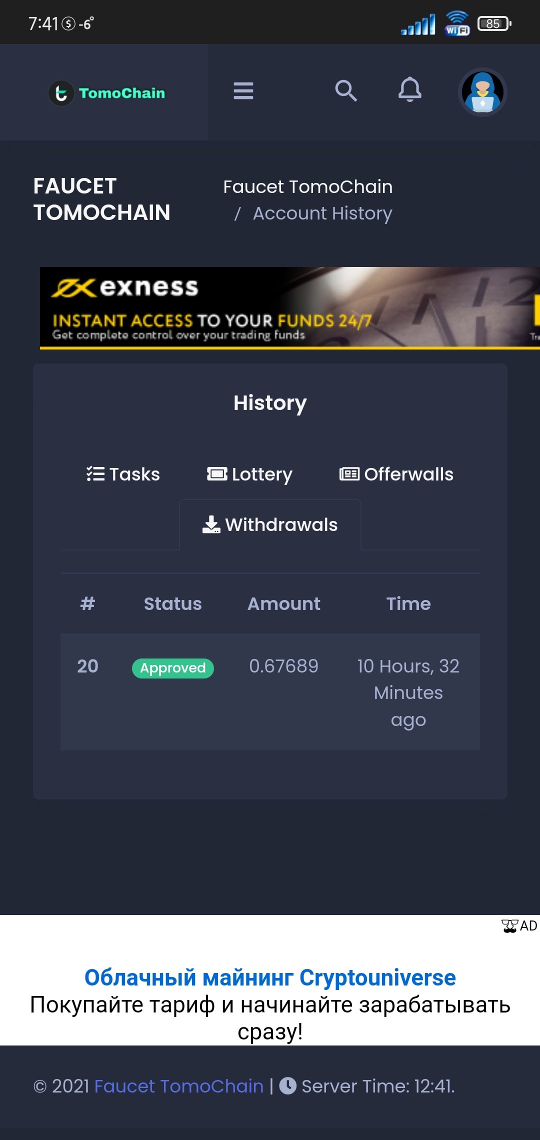 Faucettomo.xyz Сборщик токена Tomochain. Пятиминутный кран, shortlink, ptc.