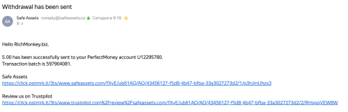 Wan Posted 4 Apr 2022, 18:18 Author Posted 4 Apr 2022, 18:18 Хорошая новость от Safe?Assets С сегодняшнего дня, по просьбам партнеров, минимальный вывод на PerfectMoney и EpayCore - всего $5! -- Всем хорошего настроения и профита.