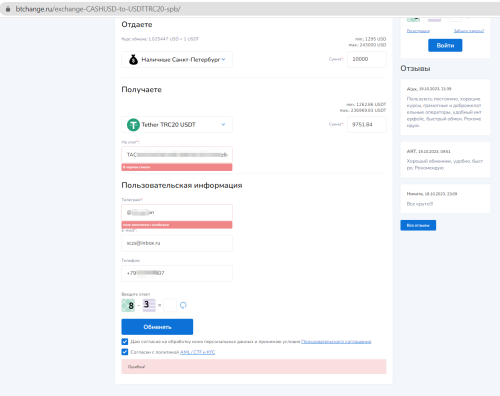 BTchange.ru - обменник валют: BTC, USDT, LTC, USD, EUR, Сбер, Тинькофф, Qiwi - наличный и Безналичный расчет