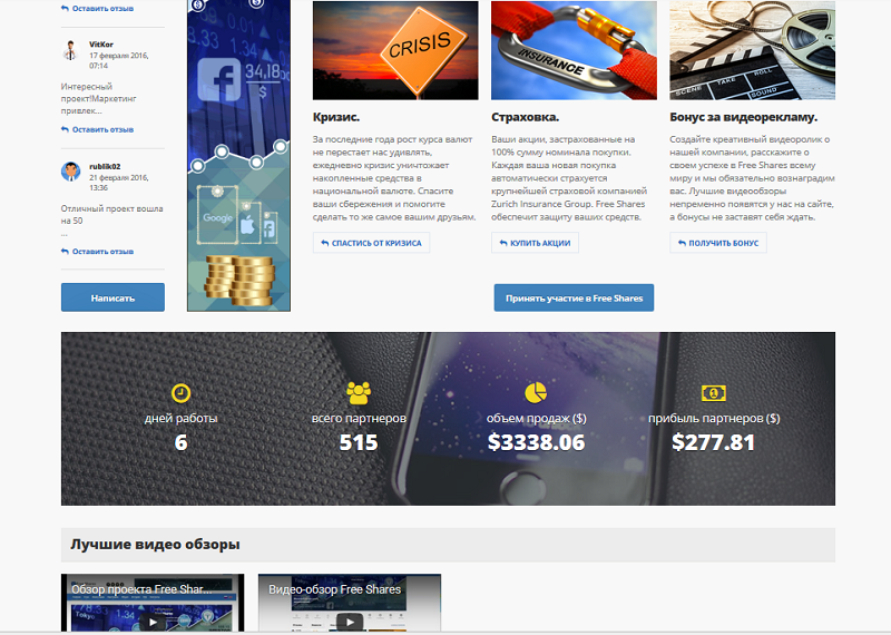 Pchelomor228 Posted 21 Feb 2016, 23:17 Posted 21 Feb 2016, 23:17 free-shares free-shares.comОсновная цель проекта Free Sharesсэкономить время клиента, сделав процедуру максимально простой.Free Shares – эксклюзивная площадка, которая была создана для того, чтобы сэкономить время клиента, сделав покупки максимально простыми и быстрыми. Сейчас покупка акций мировых компаний сопровождается сплошной бюрократической процедурой. Клиентам длительное время приходится по несколько раз посещать офисы брокерских компаний и ждать несколько дней, пока деньги на покупки ценных бумаг дойдут до биржи.Компания Free Shares предоставляет услуги эксклюзивной площадки по продаже акций известных мировых брендов. На сайте вы можете выбрать понравившиеся акции за несколько минут, причем необязательно это должны быть акции одного элемента – можно сформировать целый портфель из ценных бумаг разных ведущих компаний и получать ежедневно по ним дивиденды.Free Shares выкупает разные объемы пакета акций на бирже и распределяет доступ к покупке на сайте компании. Мы даем возможность абсолютно любому человеку на земле купить и стать полноценным владельцем пакета акций. Все ваши инвестиции автоматически страхуются крупнейшей страховой компанией Zurich Insurance Group.Каждый клиент Free Shares может не беспокоиться о своих денежных средствах, каждая новая ваша покупка автоматически страхуется крупнейшей страховой компанией Zurich Insurance Group. На площадке Free Shares происходит ежедневное начисление процентов от 1 до 3% в сутки в течение одного года, в зависимости от купленного номинала пакета акций и мирового бренда. Инвестор будет заранее знать, какую прибыль он получит завтра, через месяц, через шесть месяцев или через год, сам подсчитав общий суммарный доход.Инвестирование в компанию Free Shares —это инвестиции не только в завтрашний день, но и в будущее своей семьи.Правильное использование партнерской программы - это успешный путь к финансовой независимости.Правильное использование эксклюзивной площадки Free Shares и всех преимуществ партнерской программы позволит каждому клиенту компании не только увеличить существенно свой доход, но и подняться по карьерной лестнице до уровня «Президент». Для получения всех привилегий от Free Shares, вам всего лишь нужно сделать правильное приглашение к себе в команду активных друзей и инвесторов по всему миру.Когда вы откроете для себя инвестиционный бизнес с компанией Free Shares, вы сразу же получите статус «Новичок» и доступную трехуровневую партнерскую программу 7-2-1% от покупки акций вашими друзьями. Free Shares развивает интернациональную партнерскую сеть, в основе которой лежит продвижение компании, что способствует значительному притоку инвестирования для успешной работы и развития нашей площадки. Работая со своими партнерами и друзьями, у вас есть возможность построить очень мощный серьезный бизнес, который будет вам приносит ежедневно хорошие дивиденды за проделанную работу.Развивая компанию вместе со своими партнерами, вы постепенно будете расти по карьерной лестнице, которая вас приведет к новым рангам, бонусам и привилегиями в Free Shares. Пройдя 5 этапов развития своей партнерской сети, вы будете получать максимальное вознаграждение от нашей площадки.Ссылка на проект https://free-shares.com/?ref=Pchelomor228Видео Обзор Проекта https://www.youtube.com/watch?v=MBkUeOGYcAsНаш Вклад 02.21.16 20:14 Account Transfer -10.00 Sent Payment: 10.00 USD to account U10753179 from