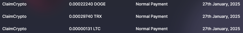 claimcrypto.in-0,00000136 LTC/5 секунд & 0,00029TRX и 0,00022Doge и т. д. (много монет)/3 минуты.