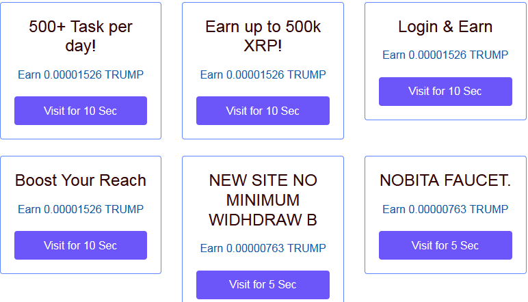 coinsfaucet.top-зарабатывайте TRUMP с помощью рекламы, коротких ссылок и офферволла