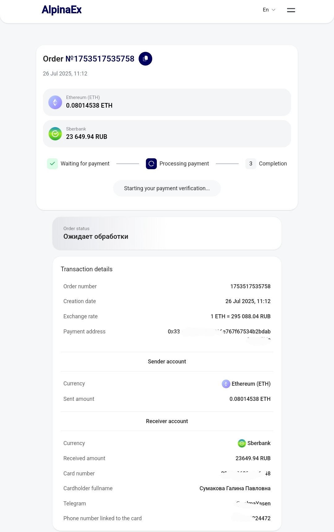 AlpinaEx - сервис мгновенного и качественного обмена