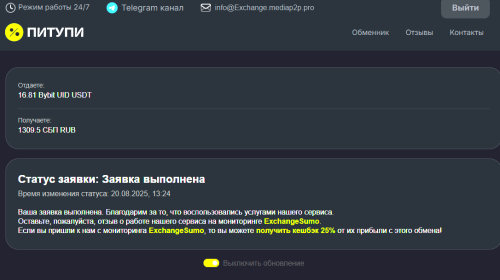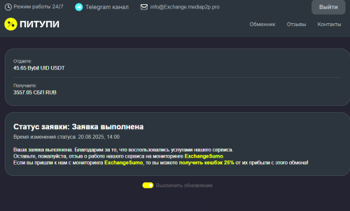 [Накрутка отзывов] Питупи - надежный обмен 24/7 - USDT, BTC, ETH, RUB