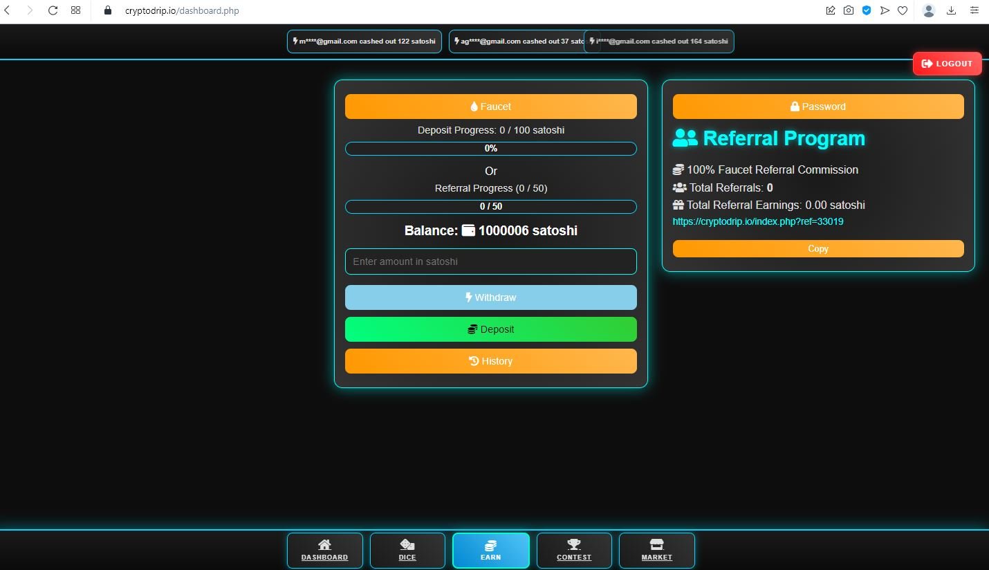 cryptodrip.io[новая версия ] - кран, ежедневно бесплатно 10000 литоши (LTC);нет минимального FP