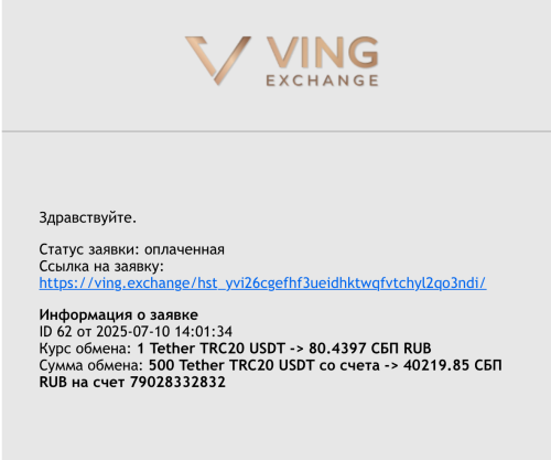 VING.exchange — простой и надежный обмен криптовалют на СБП RUB