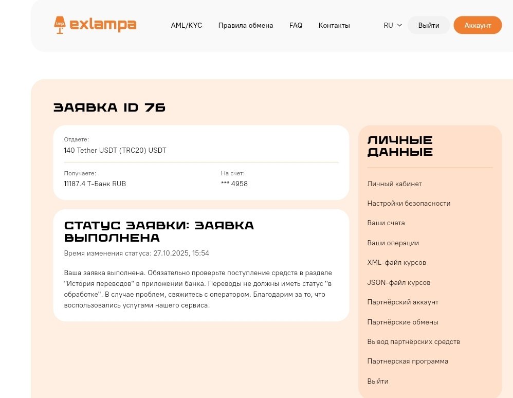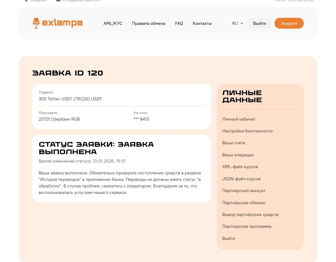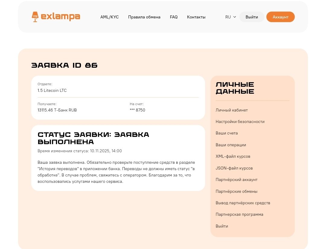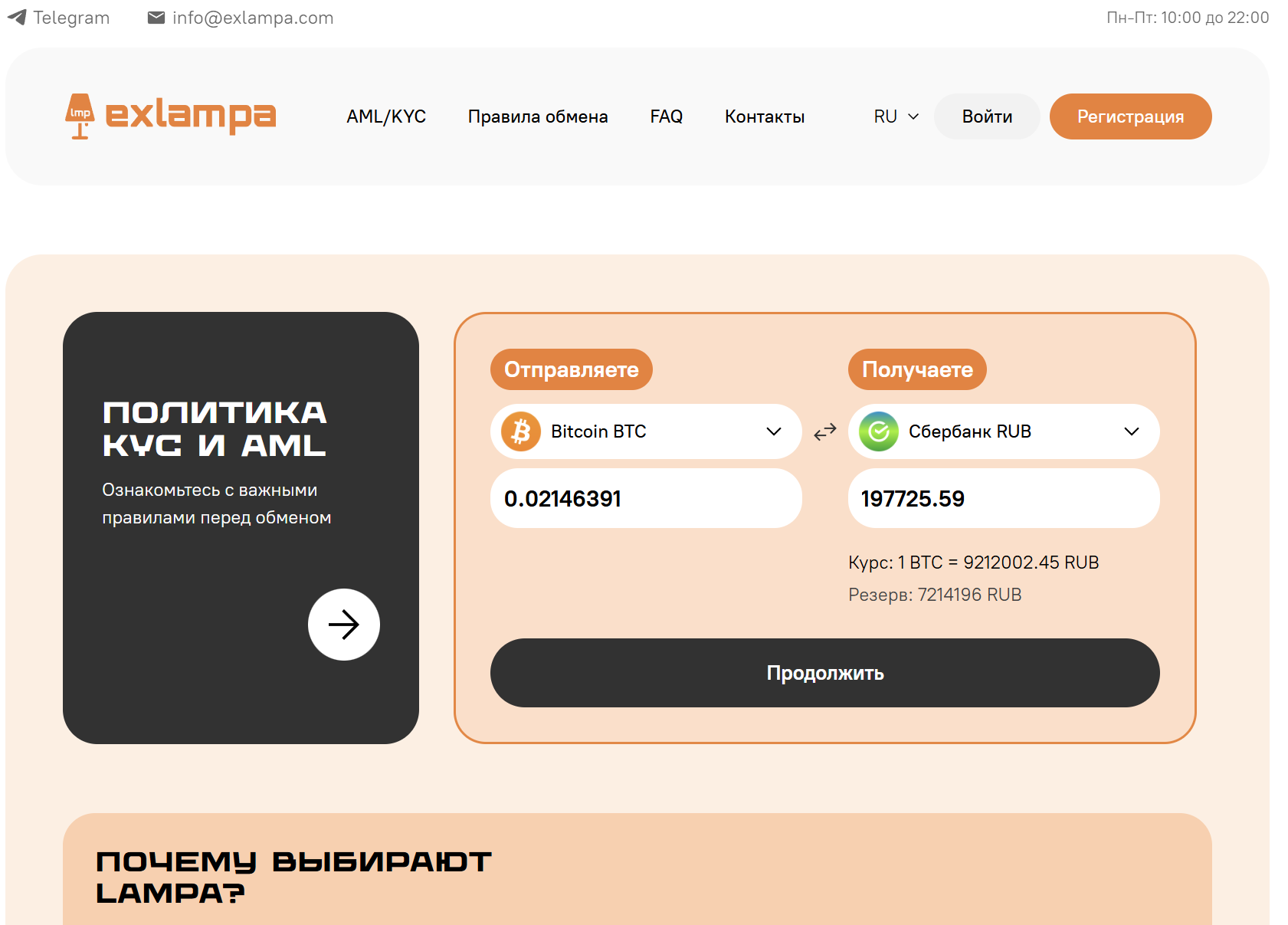 ExLampa.com - безопасный обмен криптовалюты и фиата