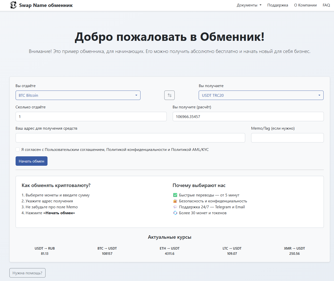 Скрипт обменника криптовалют. Полностью бесплатное решение.