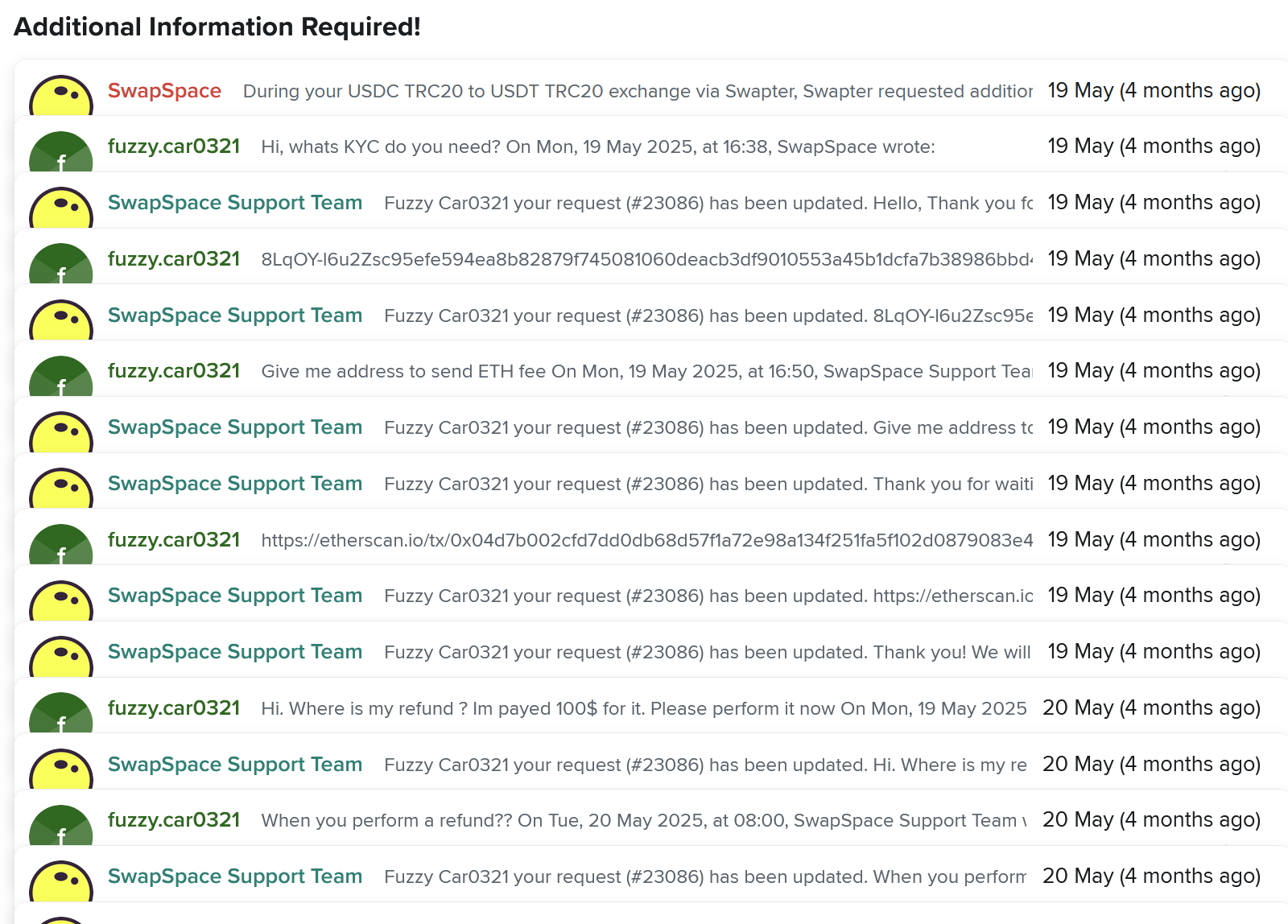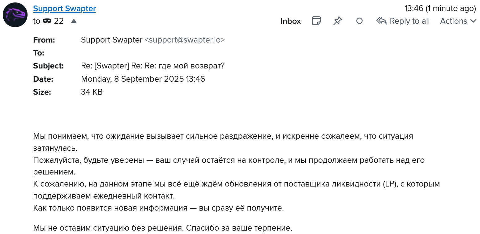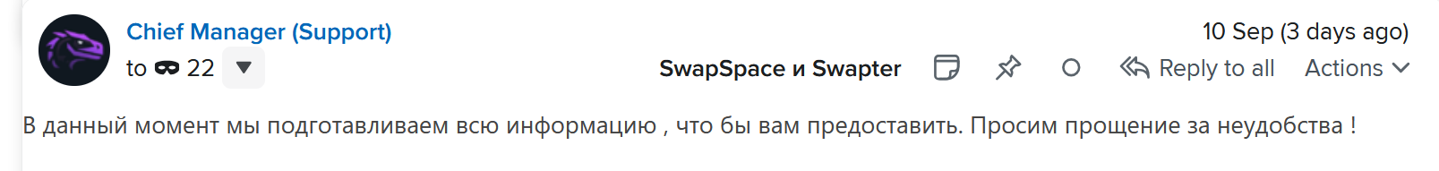 Обменник Swapter и агрегатор SwapSpace не вернули 1100$. Это кража, других слов нет