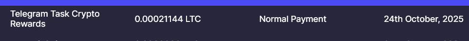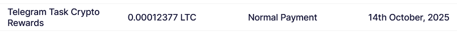 Natin Posted 10 Oct 2025, 21:13 Posted 10 Oct 2025, 21:13 https://t.me/taskcryptorewards_bot/taskcryptorewards?startapp=UIH1X4B Платит LTC или USDT (на выбор) за просмотр рекламы. На ПК очень удобно, пассивные окна просмотра. Есть накопит. бонус% Минималка на вывод 200 монет. За каждую рекламу дают 50 монет, то есть после просмотра 4 реклам уже можно выводить. Вывод моментален.