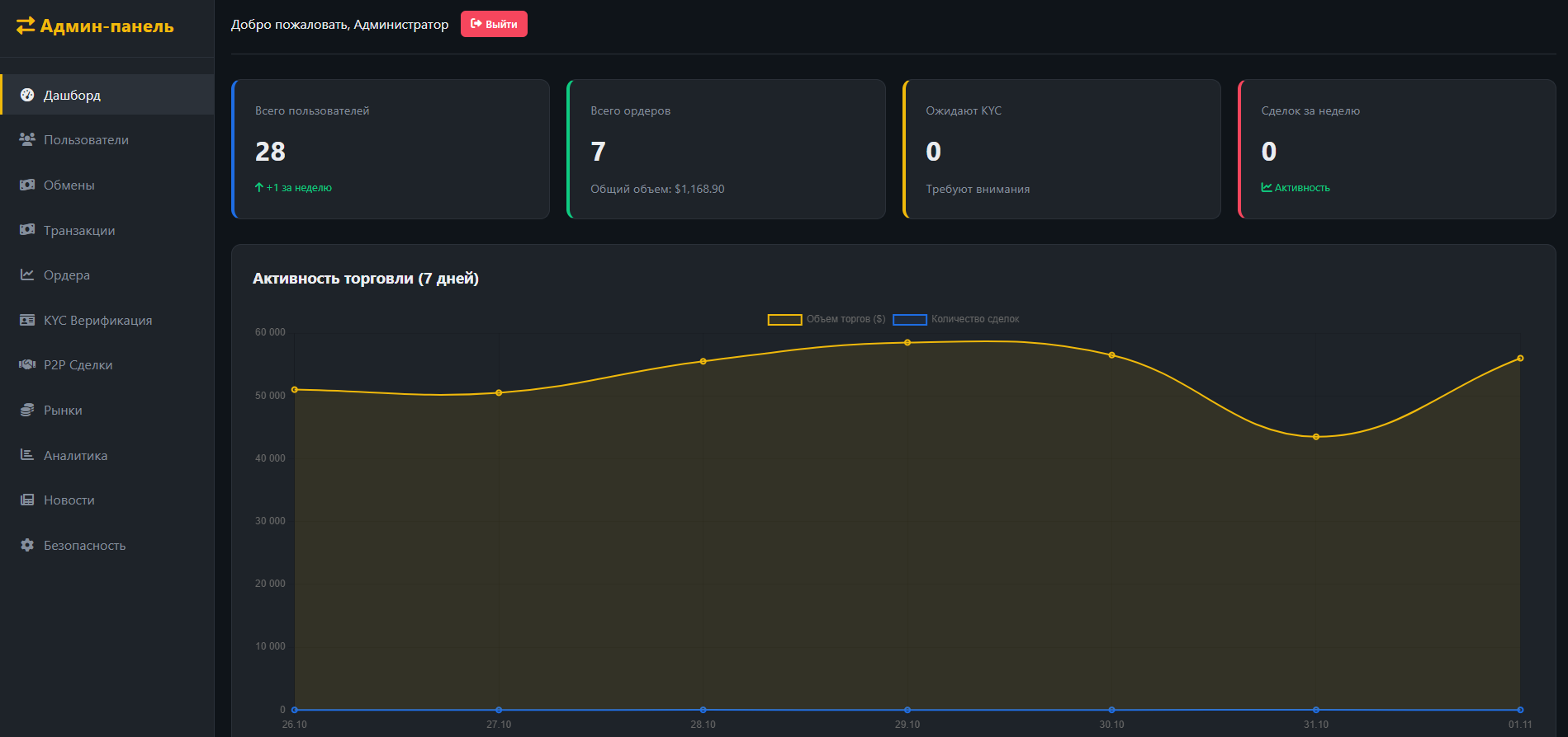 Скрипт криптобиржи — аналог Binance с P2P, ликвидностью, торговлей и админкой