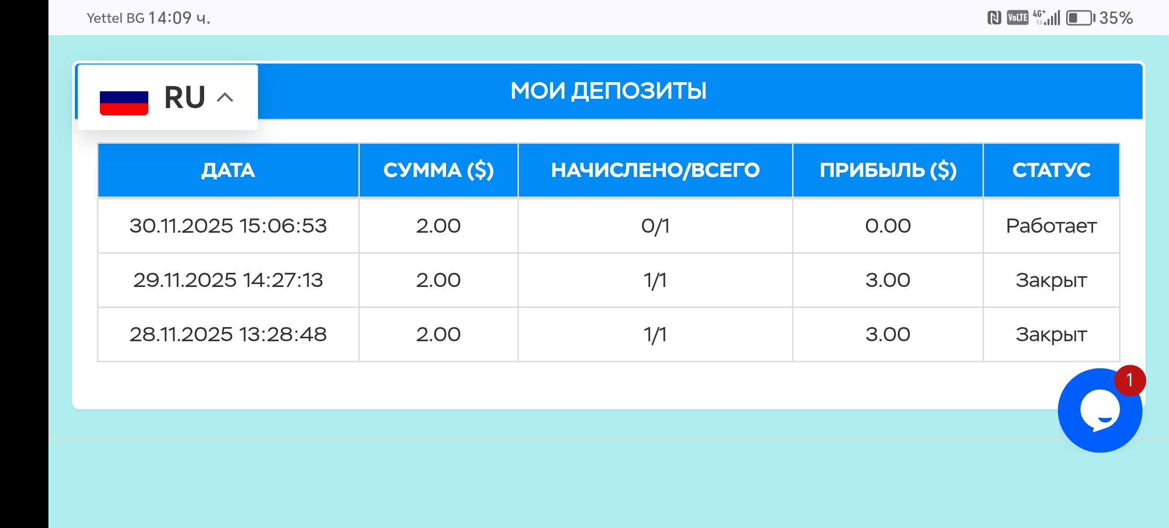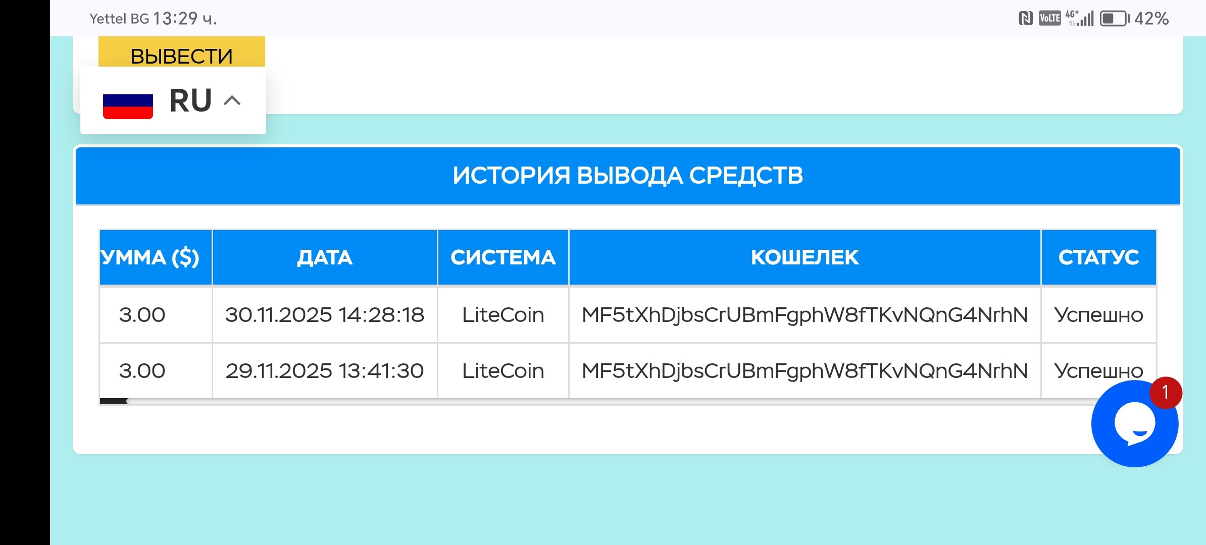 RG74 Posted 29 Nov 2025, 11:20 Author Posted 29 Nov 2025, 11:20 (edited) Получил первую выплату 3$, вклад 2$ https://live.blockcypher.com/ltc/tx/8a240d7cca6bb346edf62307f06e520d576f820e0952b66781e07b004846115d/ Нов вклад 2$ https://live.blockcypher.com/ltc/tx/dfe2f9f3f7d4a2a92b4795f62ceef05dbbf700789723b0c119ea625dfdc6b900/ Платежи и выплати принимаются в болшинстве криптовалют. Edited 29 Nov 2025, 11:28 by RG74
