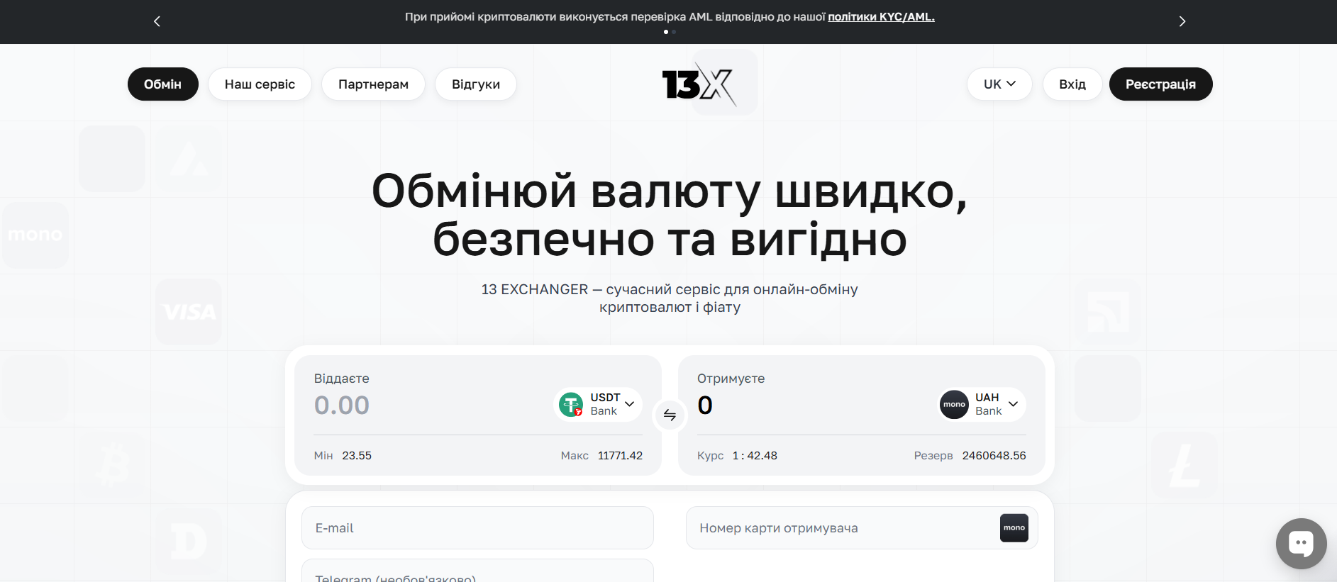 13XCHANGER.COM — финансовые услуги | крипта/эл. деньги