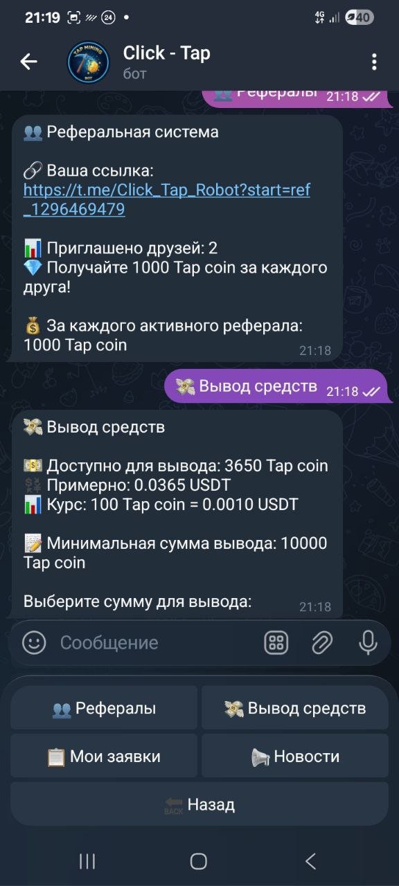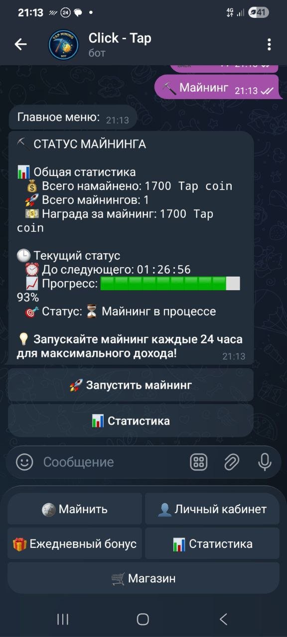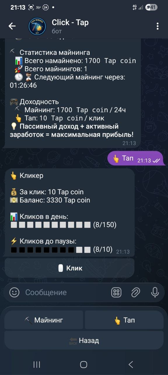 @Click_Tap_Robot - майнинг + клики в ТГ за USDT