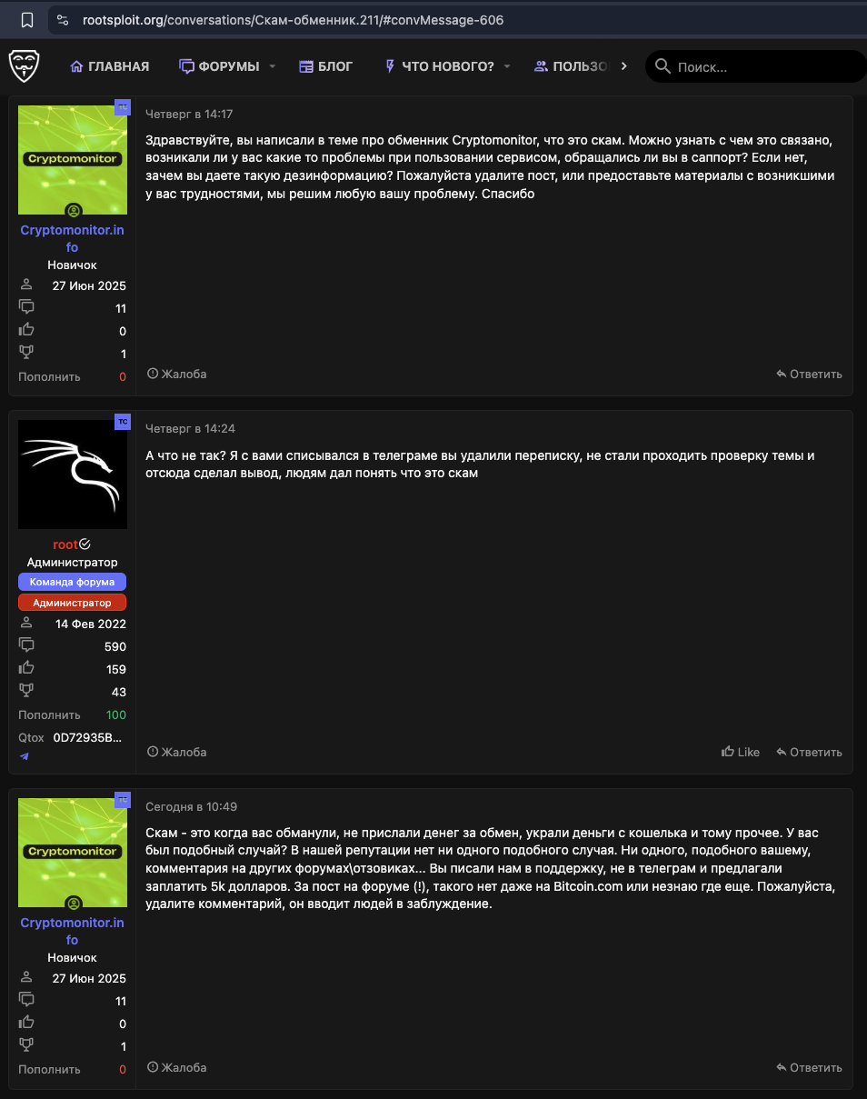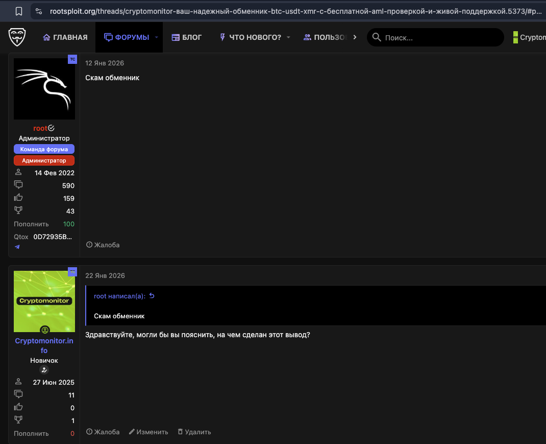 Бездоказательное обвинение в скаме со стороны стороннего форума rootsploit.org