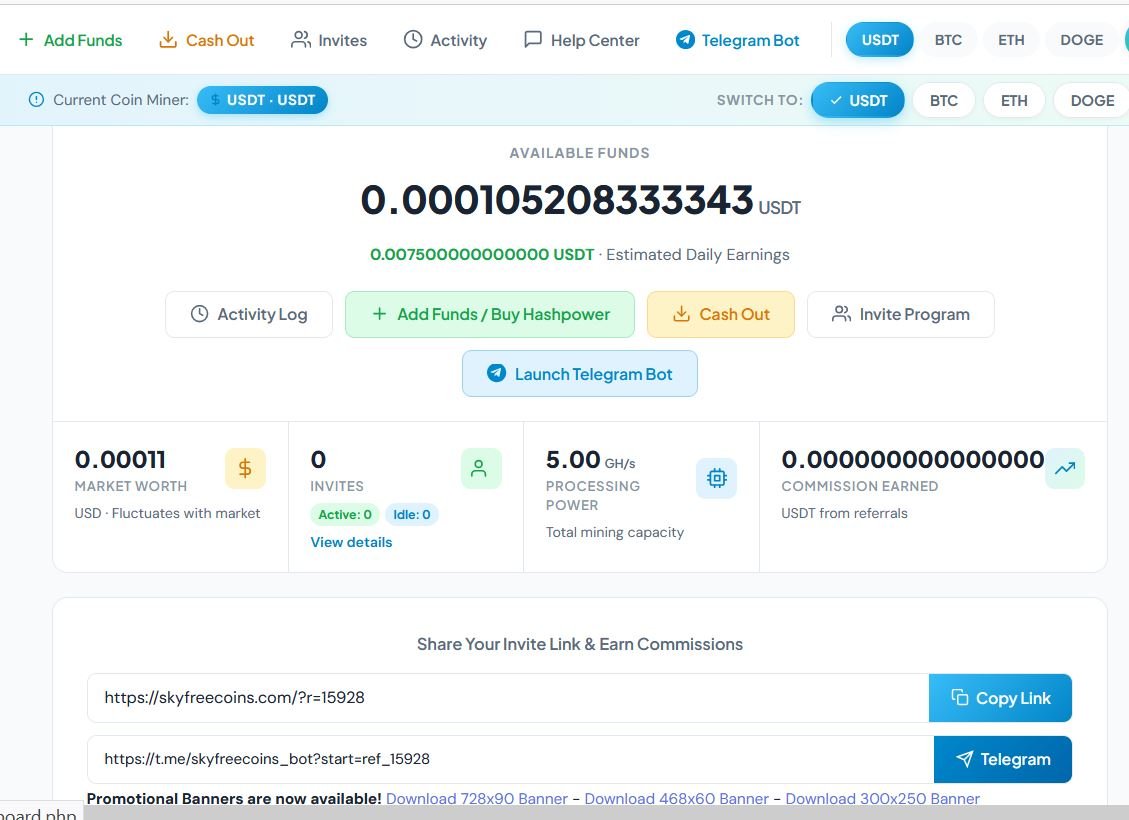 skyfreecoins.com - новый сайт бесплатного майнинга USDT BTC ETH DOGE