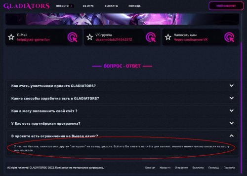 [проблемы с выплатами] glad-game.fun - Вкидывай бабло, может быть НЕ выведешь никогда"...