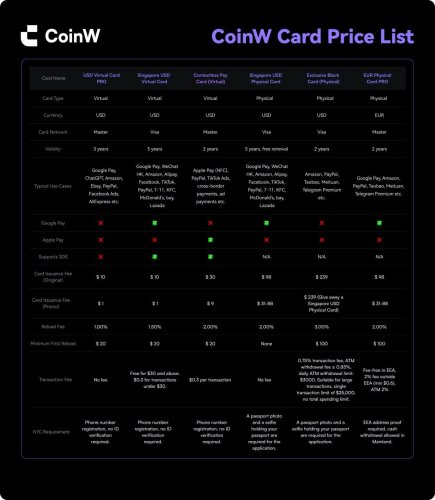 Список криптокарт (карт с пополнением криптовалютой)