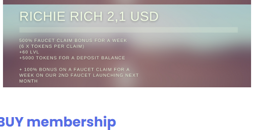 cryptoMan97 Posted 10 Oct 2022, 22:39 Author Posted 10 Oct 2022, 22:39 добавили подписки. так за $2,1 можно получить бонус +500% к сбору на неделю и +100% на будующий кран Также обещали сделать стэйкинг (предварительно ставки такие были: за 14 дней 1%, за 30 дней - 2% от $2) И ещё запустили premium faucet вывод от 500 сатоши, дают от 1-3 сатоши раз в 5 минут без коротких ссылок вот так выпадало мне
