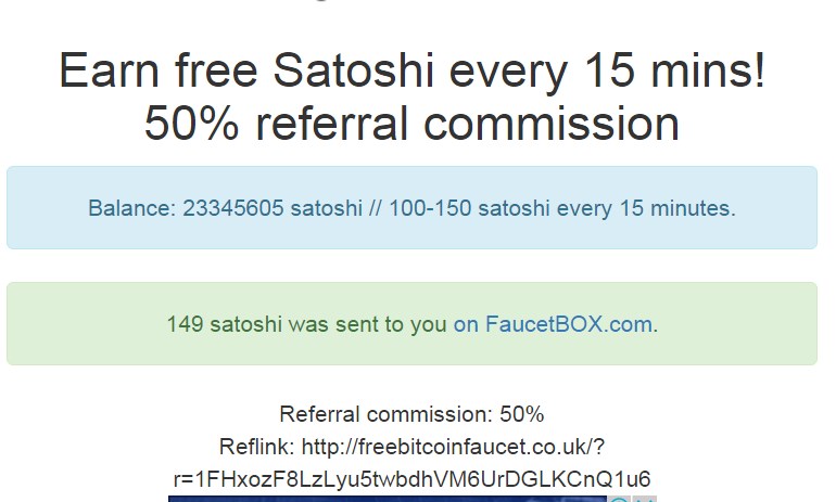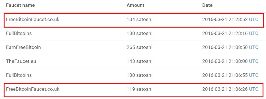 yader_ua Posted 30 Mar 2016, 16:14 Posted 30 Mar 2016, 16:14 100-150 satoshi every 15 minutes. FreeBitcoinFaucet.co.uk 111 satoshi 2016-03-30 16:14:04
