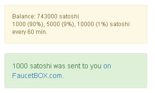 AlexB Posted 27 Mar 2016, 18:21 Posted 27 Mar 2016, 18:21 Баланс крана пополнился и щедрые выплаты возобновились :) Налетай ;) 5000 satoshi was sent to you on FaucetBOX.com. Marduk - 1000 to 10000 Satoshi every hour! 5000 satoshi 2016-03-27 21:08:27 MSK 1