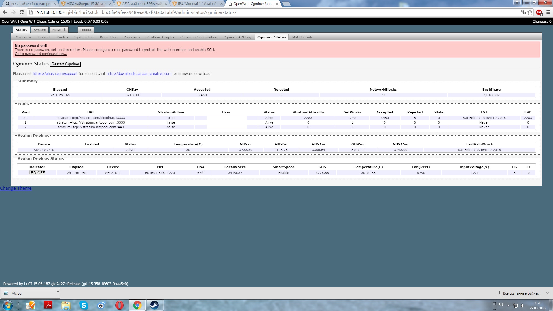Приобрёл Avalon 1346 110Тх, с заводской прошивкой с режимами P11 и P12, результаты получил следующие: Сток прошивка: Normal - 92Th - 2730W High perforemance - 113Th -3320W P4 - 81Th - 2140W P0 - 113Th - 3320W На прошивке: Normal - 93Th - 2740W High performance - 113Th - 3320W P12 - 124Th - 3750W P11 - 119Th - 3540W P4 - 94,5 - 2550W P0 - 113Th - 3320W Оставил работать в Р12, на пуле показывает 12 -
