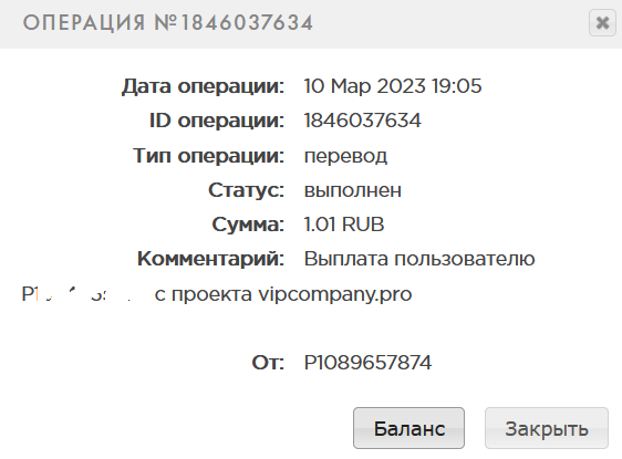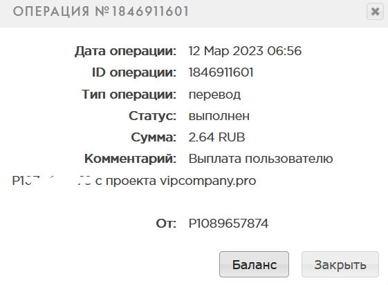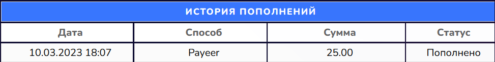 KRIKyn Posted 10 Mar 2023, 15:09 Posted 10 Mar 2023, 15:09 (edited) Я НЕ АДМИН И НЕ СОЗДАТЕЛЬ ПРОЕКТА Старт 10.03.2023. [СКАМ], сделали 13.03.2023 рестарт проекта с удалением всех депозитов! Регистрация через кошелек Payeer. Минимальный депозит - 10 рублей. Минимум для выплат - 1 рубль. Маркетинг - 50% в сутки от суммы депозита доход с рефералов - 10% от пополнения Сделан депозит: ----------- Получена выплата. Инстант Edited 13 Mar 2023, 20:34 by KRIKyn