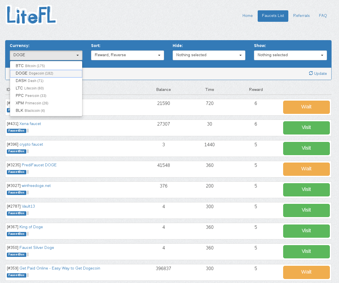 LiteFL.tk - Lite Faucets List, списко кранов BTC, LTC, DOGE, DASH, PPC, XPM, BLK
