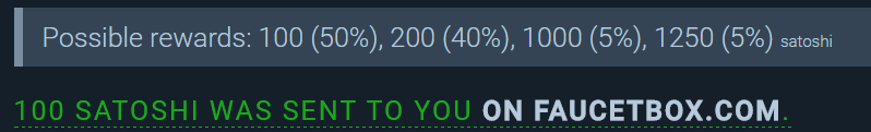 Potap Posted 28 Apr 2016, 10:45 Posted 28 Apr 2016, 10:45 (edited) Возможные награды: 100 (50%), 200 (40%), 1000 (5%), 1250 (5%) Satoshi -30 минут http://bigbtcfaucet.ml/?r=1HUWYUhSaPrPhQcHLQcoQ2vh4ACJZwBHcD Edited 28 Apr 2016, 10:56 by Potap