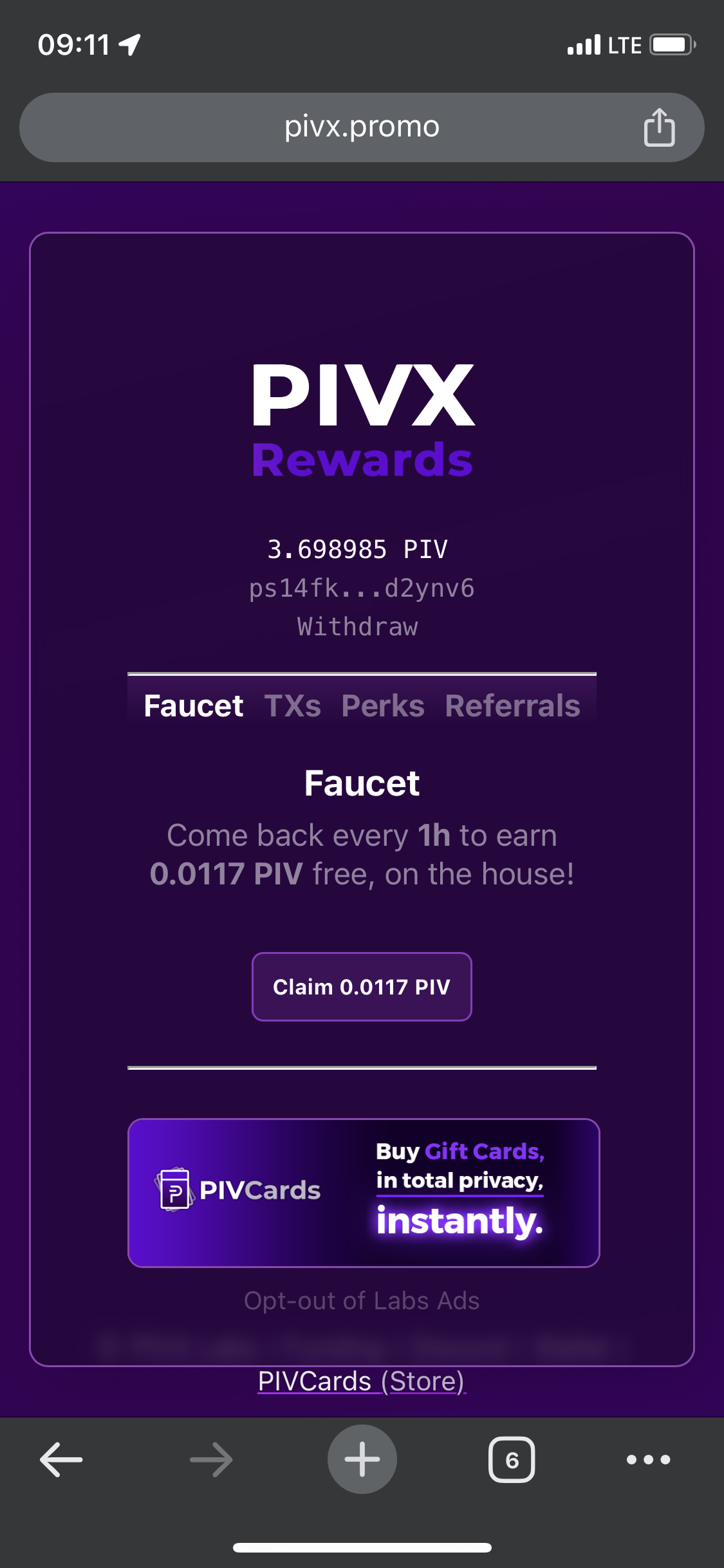 pivx.promo - раз в час собираем по 0.0062 PIV