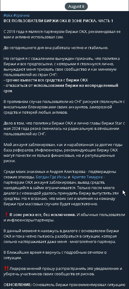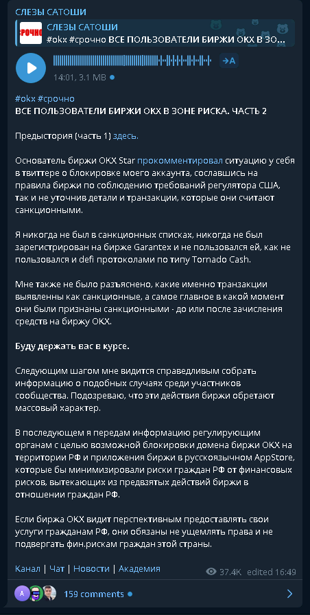 Основатель криптовалютной биржи OKX Стар Сюй развеял слухи о его задержании в Соединенных Штатах, выразив недовольство, что эта информация быстро распространилась по соцсетям. Китайский криптожурналист Колин У (Colin Wu) помог распространить в соцсети Х опровержения основателя OKX о его аресте. Журналист пояснил, что подобные слухи часто возникают в китайском сообществе после того, как гендиректор крупнейшей криптобиржи Binance Чанпэн Чжао (Changpeng Zhao) подвергся уголовному преследованию -