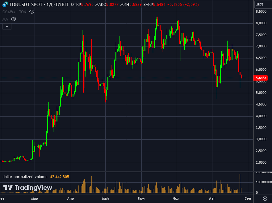 По данным аналитической платформы CoinGlass, после ареста создателя мессенджера Telegram Павла Дурова во Франции, открытый интерес к криптовалюте Toncoin (TON) среди трейдеров вырос на 32% — до $303, 09 млн. После стремительного падения цены Toncoin ниже отметки в $6 и роста открытого интереса (общее количество открытых фьючерсных контрактов) к активу, большинство трейдеров ожидают дальнейшего снижения стоимости криптовалюты. В то же время, по мнению криптоаналитика Анупа