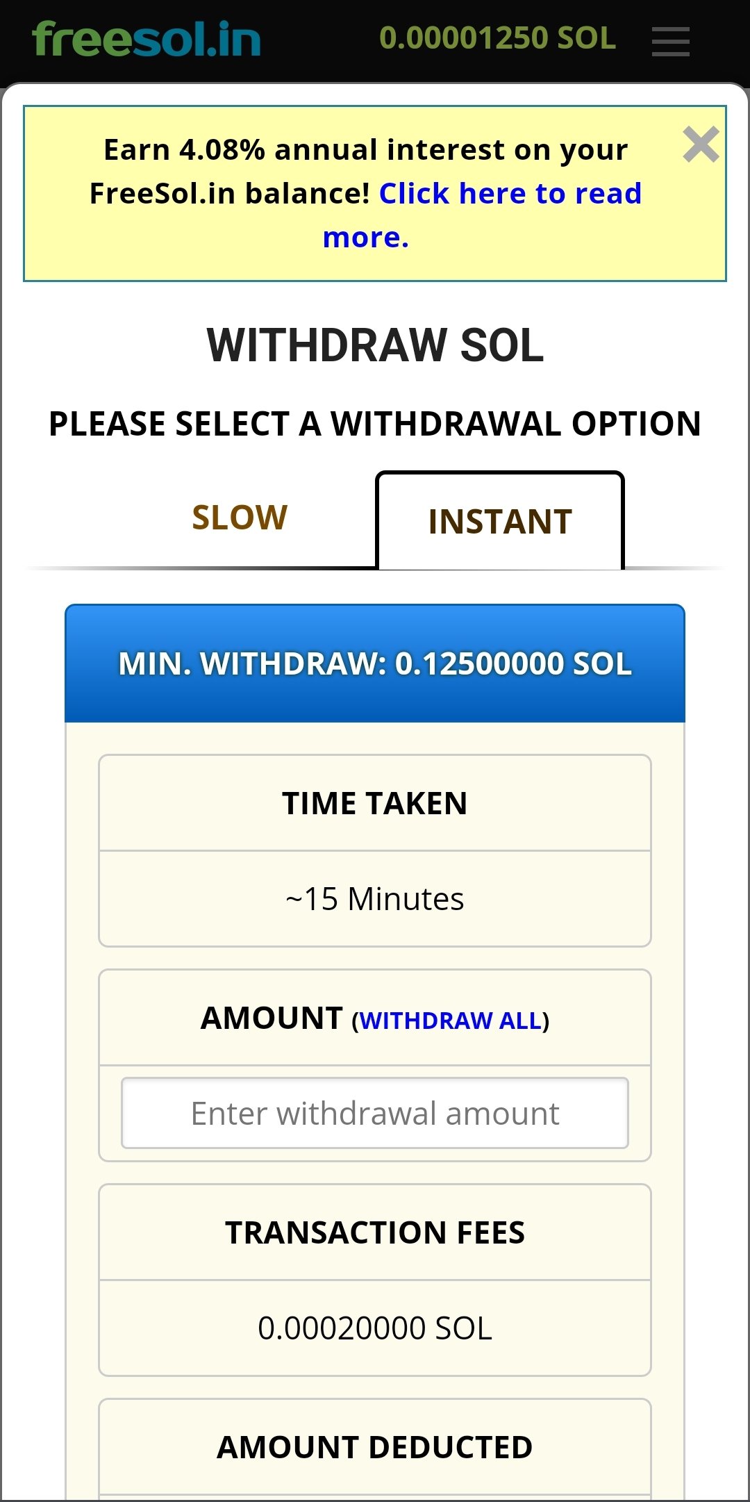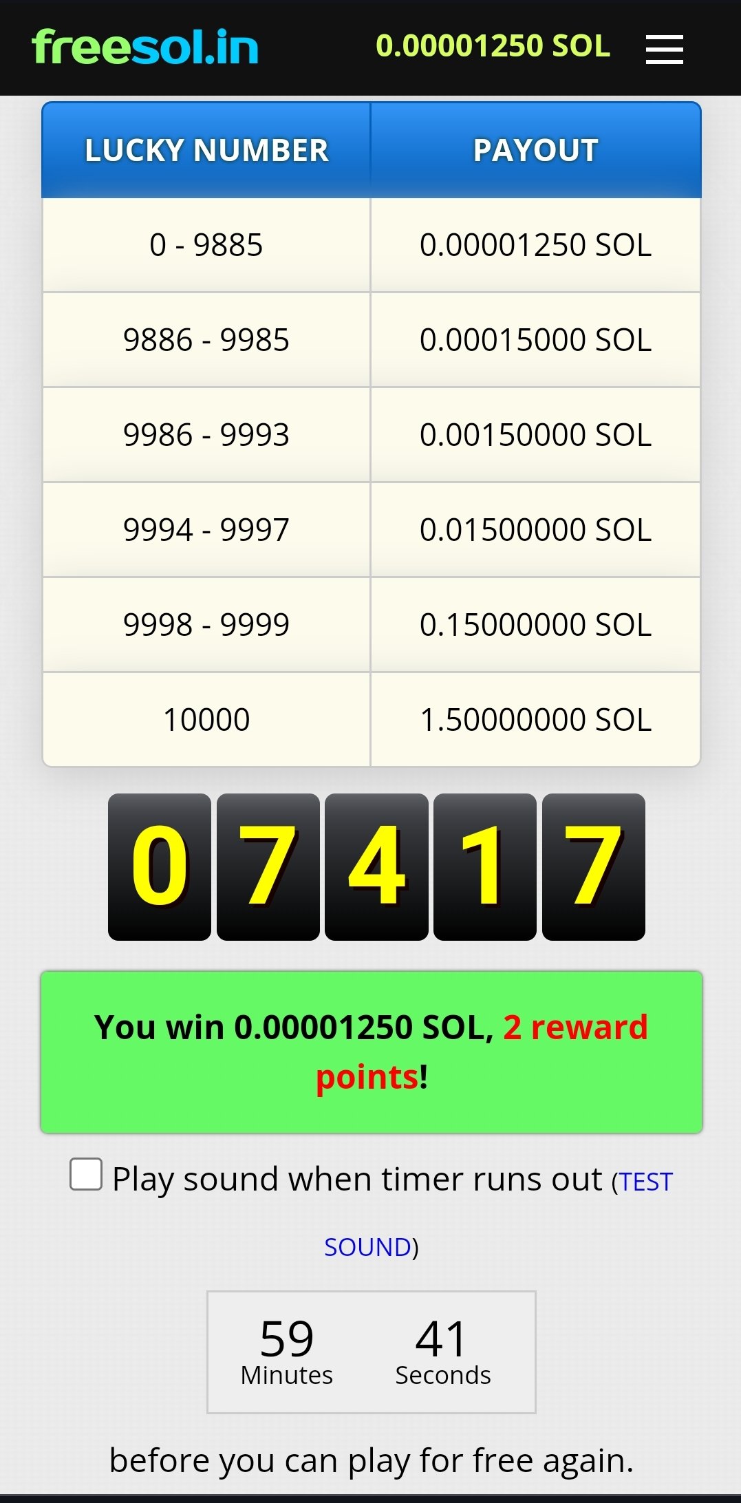 Freesol.in - новый SOL кран, аналог freebitco, клайм каждые 60 минут по 0.00001250 sol..