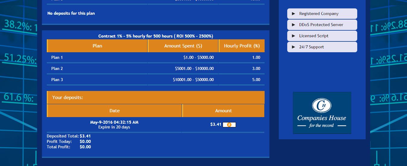 Roman Oliynuk Posted 8 May 2016, 17:51 Posted 8 May 2016, 17:51 Старт 09.05.2016 (то есть завтра), хотя вклады уже делаются.Планы:35-40% на 3 часа 1-1000$12-15% на 10 часа 100-5000$5-10% на 30 часа 250-10000$1-5% на 500 часа 1-50000$Деп. https://blockchain.info/tx/f53ab154e71fe71993b8daa940eec655fef9d38ae7345798280b1ff6d55faeb1Реф. ссылка https://energymoneyfund.com/?ref=?ref=silvernetНе скупимся, переходим по рефке.