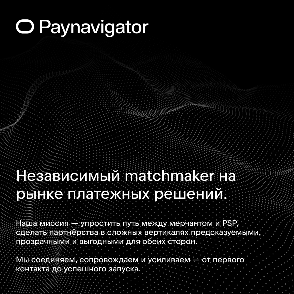 Paynavigator Posted 6 Nov 2025, 10:52 Author Posted 6 Nov 2025, 10:52 Приветствуем всех! Мы снова работаем, теперь в новом формате. Paynavigator — независимый matchmaking-сервис, объединяющий мерчантов, PSP и финтех-компании по всему миру. Наш фокус — финтех, iGaming и high-risk вертикали, где поиск надёжного платёжного партнёра всегда сложен. Мы помогаем бизнесам: находить проверенные PSP, подходящие под их GEO, обороты и риск-профиль, сопровождать переговоры и интеграции, строить долгосрочные партнёрства, основанные на доверии и прозрачности. Для PSP мы создаём поток целевых клиентов. Для мерчантов — быстрый и безопасный путь к запуску платежей. Мы берём на себя сложную часть — чтобы ваши платёжные решения работали просто, стабильно и масштабировались глобально. Офферы и запросы можно направить сюда – t.me/paynavigator В 18.07.2025 в 10:47, Helber сказал: @Paynavigator, если вы не работаете, пока перемещаю в услуги Буду благодарен, если переместите в исходную тему